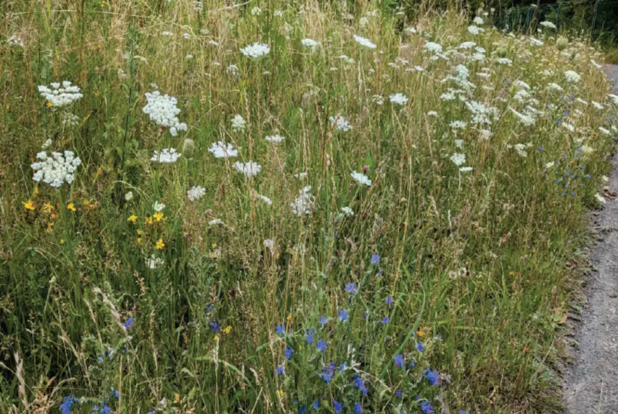 - Biodiversität: Förderung artenreicher Wiesen und Wegrainen durch regelmäßige Mahd und Verwertung des Mahdguts